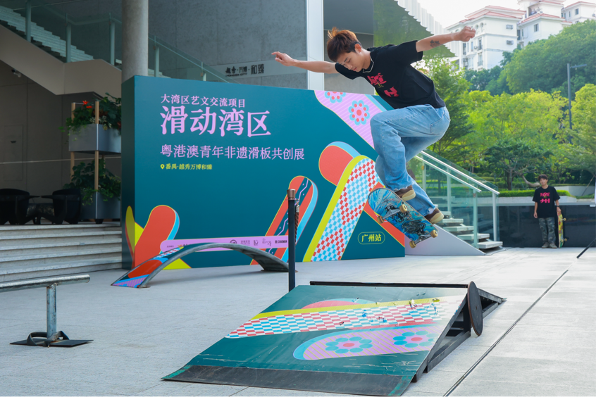 作为2025年大湾区艺文交流项目系列活动的重要组成部分,本次展览以“非遗×青年×城市更新”为主题,通过“滑板+非遗”的独特形式,展现大湾区青年文化的创造力与融合力,为全运热潮再添一把火。